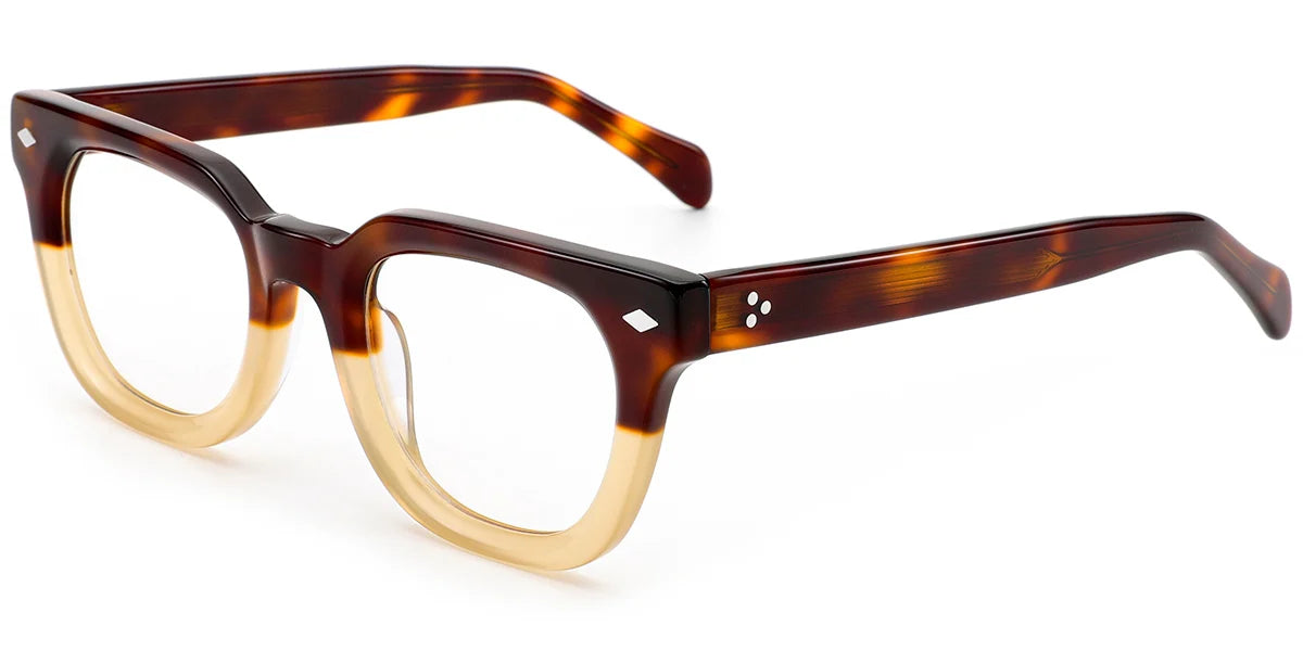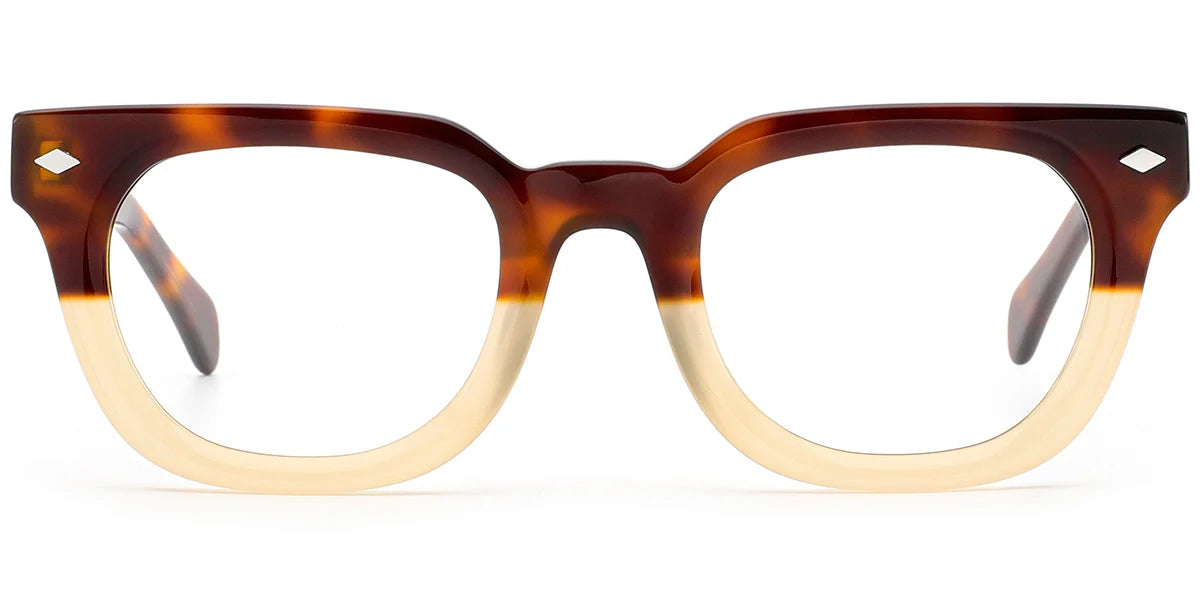 A Dos Tonos tiene un armazón que juega con contraste y calma al mismo tiempo: carey profundo arriba, claro y limpio abajo. Clásico a primera vista, distinto cuando te acercas.