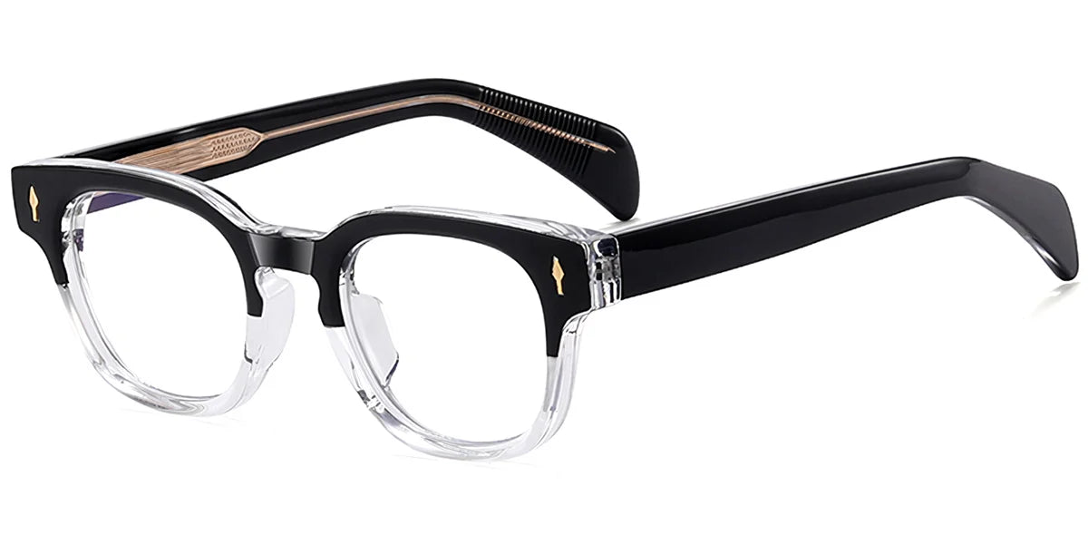 El Claro Negro combina una parte superior negra sólida con una base transparente que suaviza la mirada y eleva el estilo. El detalle metálico lateral aporta ese toque “a lo fino” que se nota, pero no se grita.