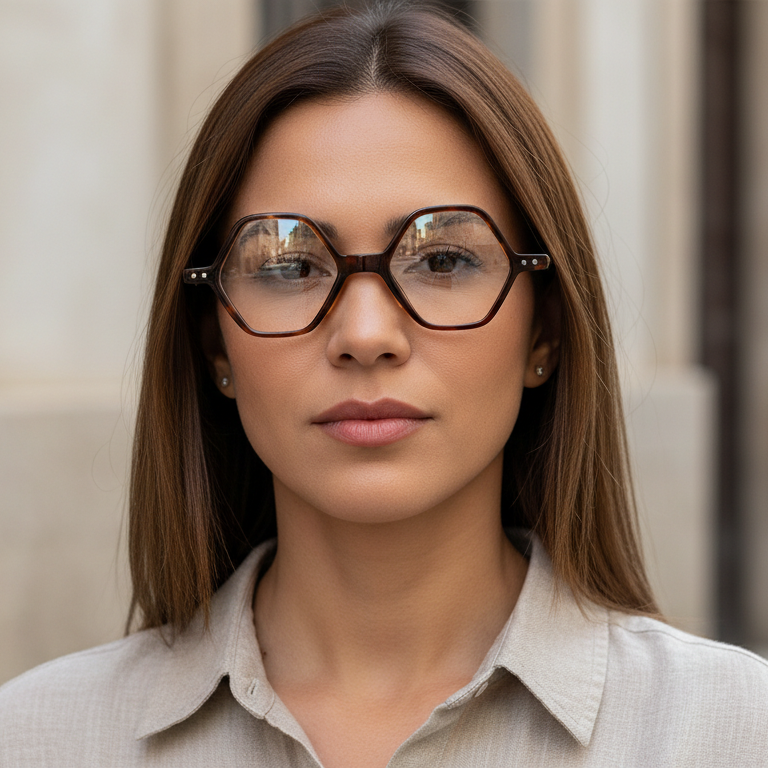 Hexa Doble combinan diseño geométrico audaz con funcionalidad total. El armazón en carey hexagonal rompe con lo tradicional, mientras que las líneas limpias y los ángulos definidos proyectan personalidad sin esfuerzo. Incluyen clip-on solar magnético, diseñado a la medida del marco, para que puedas pasar de lentes ópticos a gafas de sol en segundos.